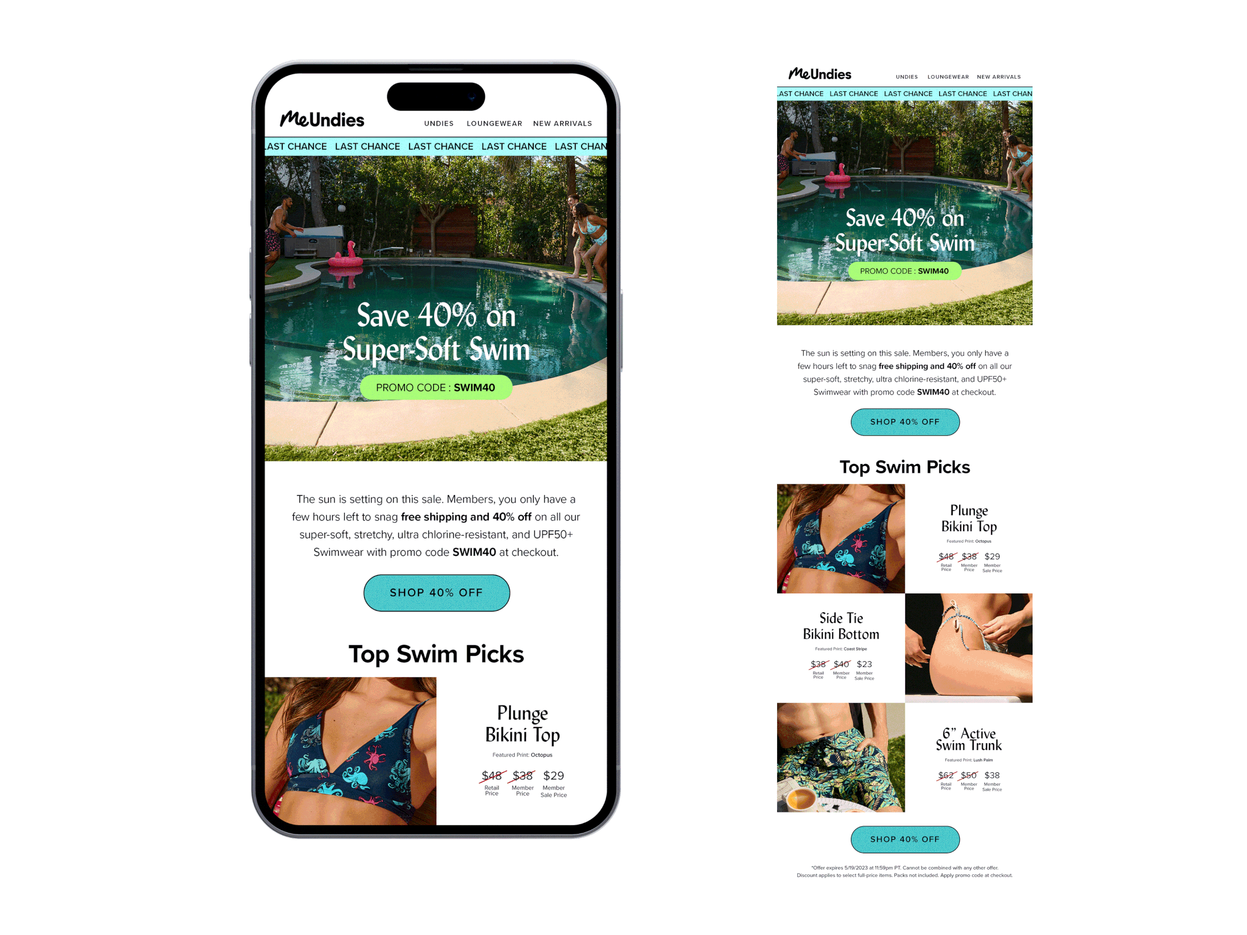 In 2023, MeUndies launched its seasonal swim line with a campaign designed to capture the carefree energy of a sun-soaked Italian getaway. As part of the in-house design team, I helped bring this vision to life across multiple channels.